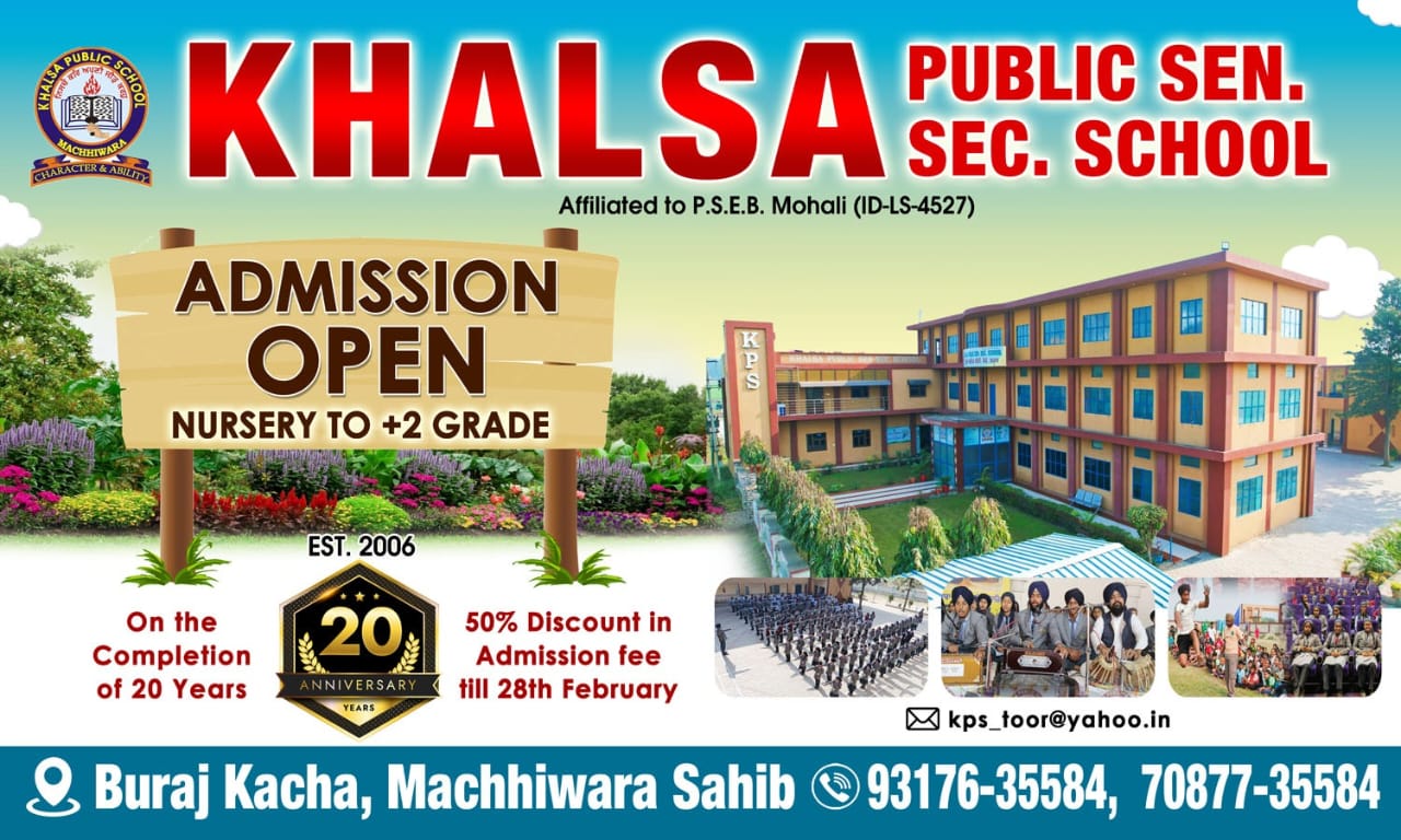 Khalsa Public Sen. Sec. School started on 6 February 2006 with the blessing of shri Guru Granth Sahib ji. From the beginning session, the school has grown very fast. School improved infrastructure, education quality, games, and moral activities, etc. Now the school has a beautiful building, playground, green surroundings, and every facility which is required for a modern education. The school is being run by a registered society named “The Khalsa Society of Education”. The school is from Pre-Nursery to +2. This school is Affiliated to Punjab School Education Board, Mohali, and its I.D.A no is LS-4527. It is also recognized by Punjab School Education ...